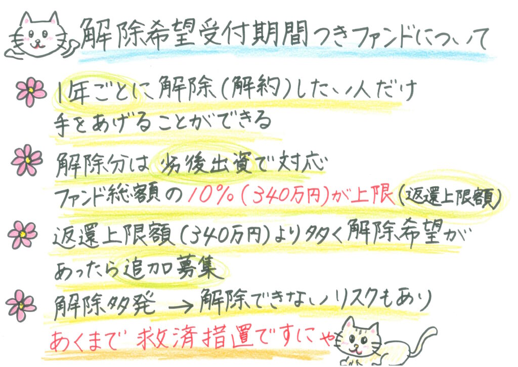 解除が多発すると継続投資家さまのリスクが高まるため、その対策として取り入れた仕組みです。